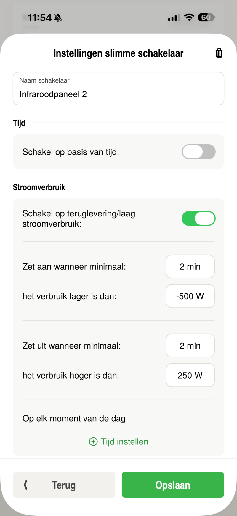 Wil je meerdere infraroodpanelen slim aansturen op basis van je zonne-overschot? Dan kun je ze stapsgewijs (in trappen) laten inschakelen. Zo benut je je eigen zonnestroom optimaal zonder onnodig terug te leveren of stroom in te kopen.