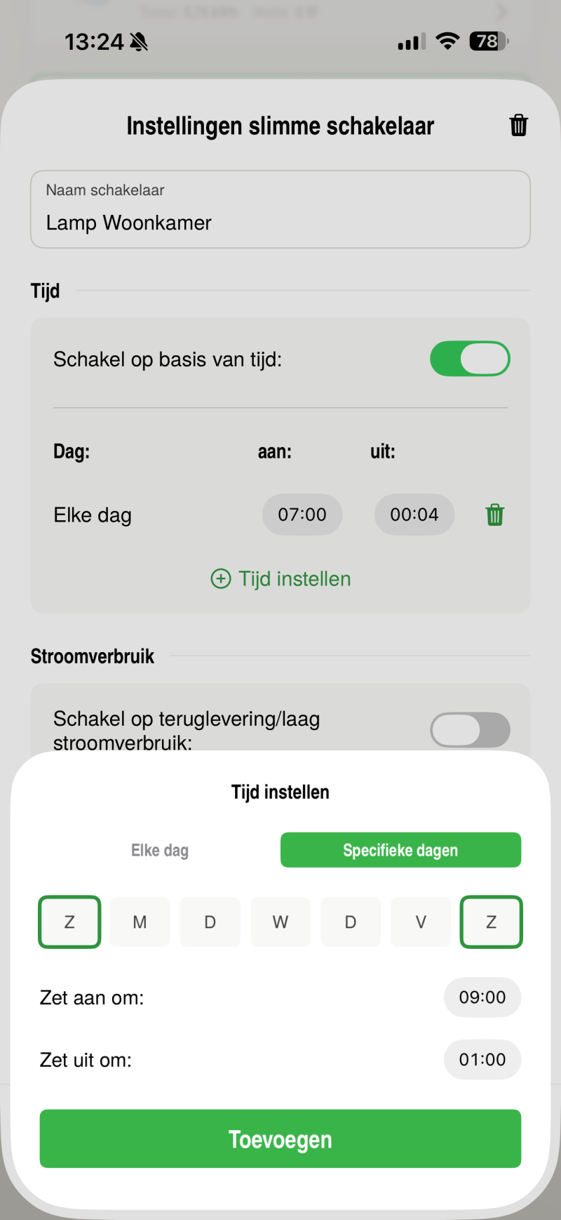 Klik opnieuw op ‘+ tijd instellen’