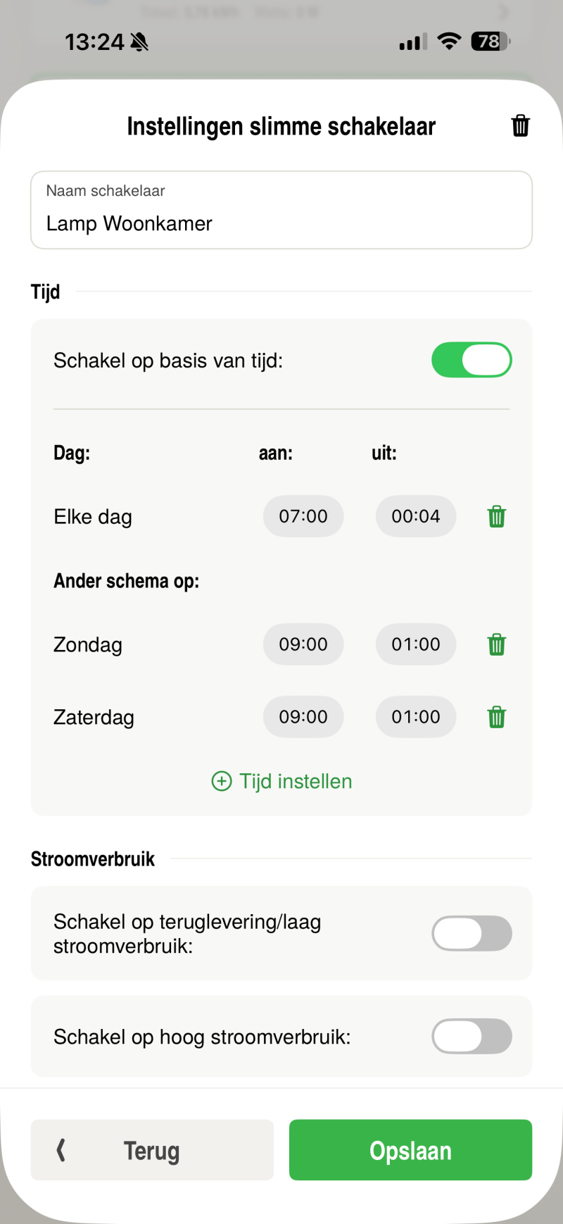De schakelaar zal nu automatisch volgens dit weekschema werken.