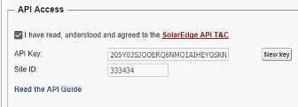 Kun je zelf inloggen op https://monitoring.solaredge.com/solaredge-web/p/login dan kun je zelf een API Key aanmaken, zie hiervoor meer informatie op: https://www.youtube.com/watch?v=iR26nmL5bXg