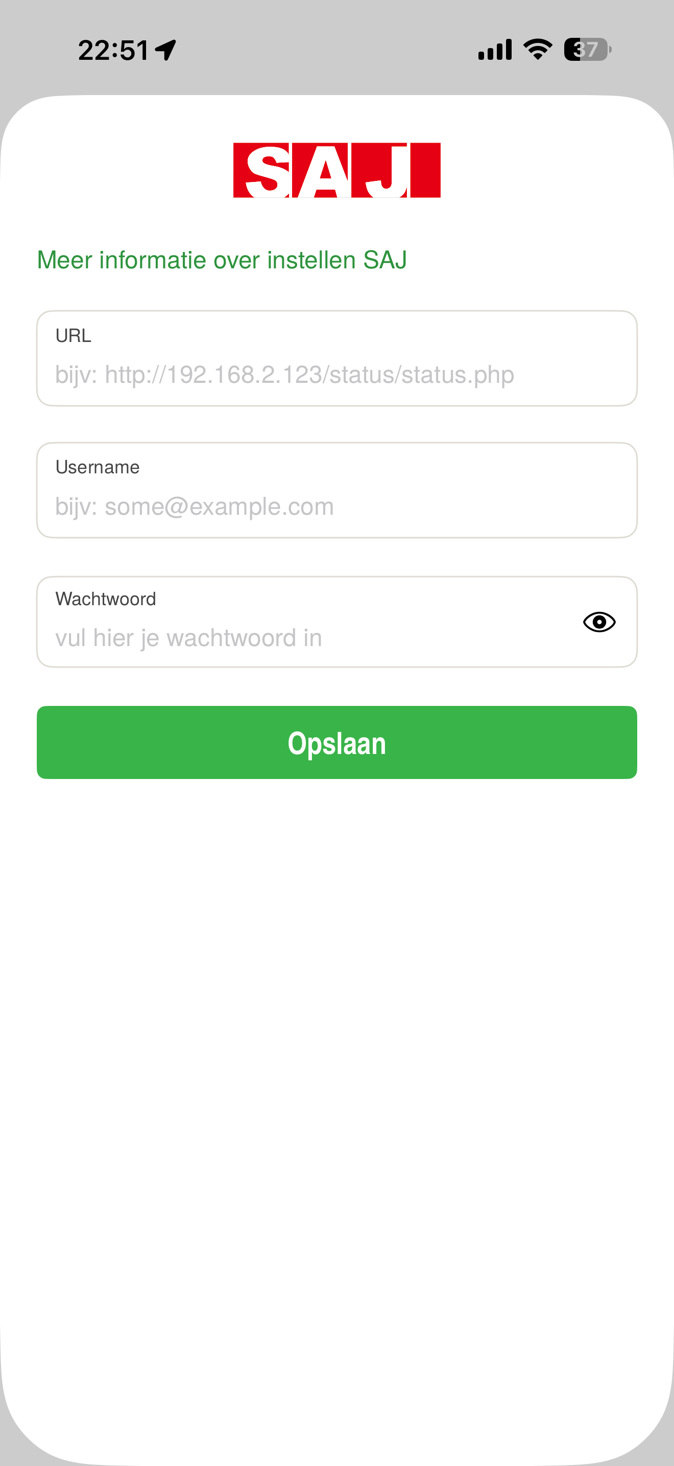 Password: wachtwoord waarmee je zelf ook kunt inloggen bij de opgegeven Url