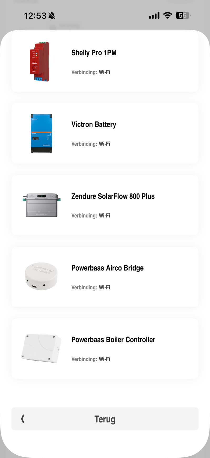 Ga in de Powerbaas App naar apparaten en klik op het plusje. Scroll naar Zendure SolarFlow 800 Plus en klik erop.
