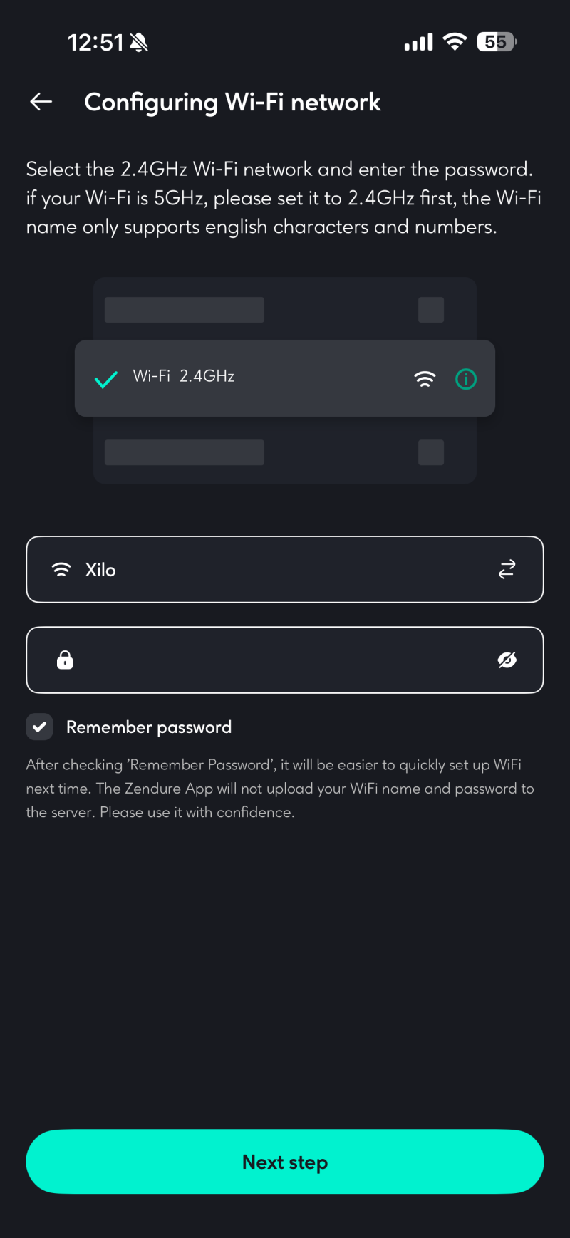Klik op het wifinetwerk en voer vervolgens het juiste wachtwoord in. Klik vervolgens op Next step.